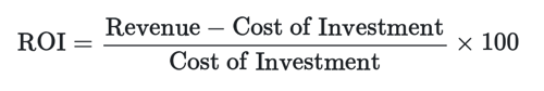 The formula for ROI is: