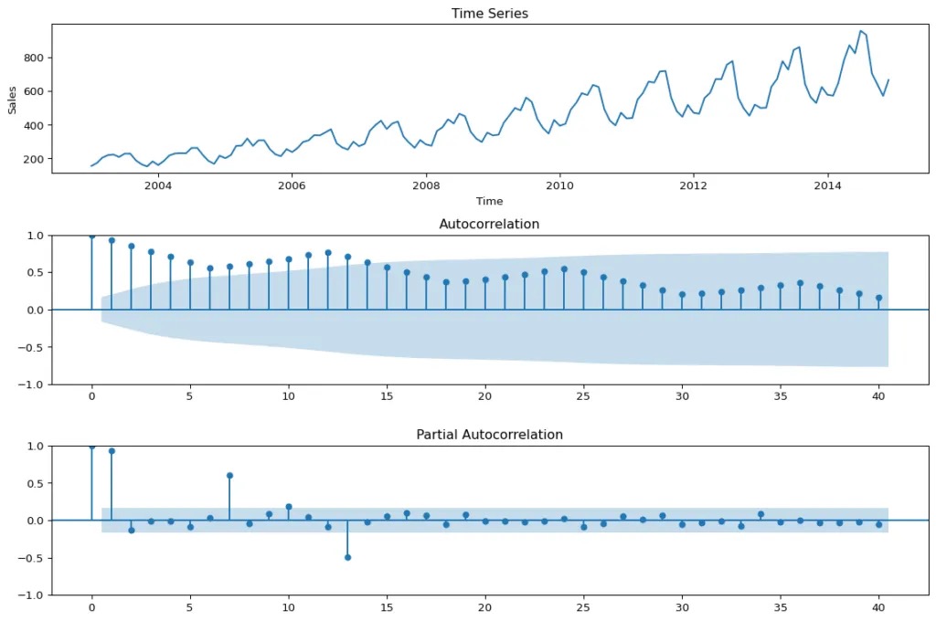 adf_test = adfuller(sales_data_ts, maxlag=12, regression="ct") # 'ct' includes trend